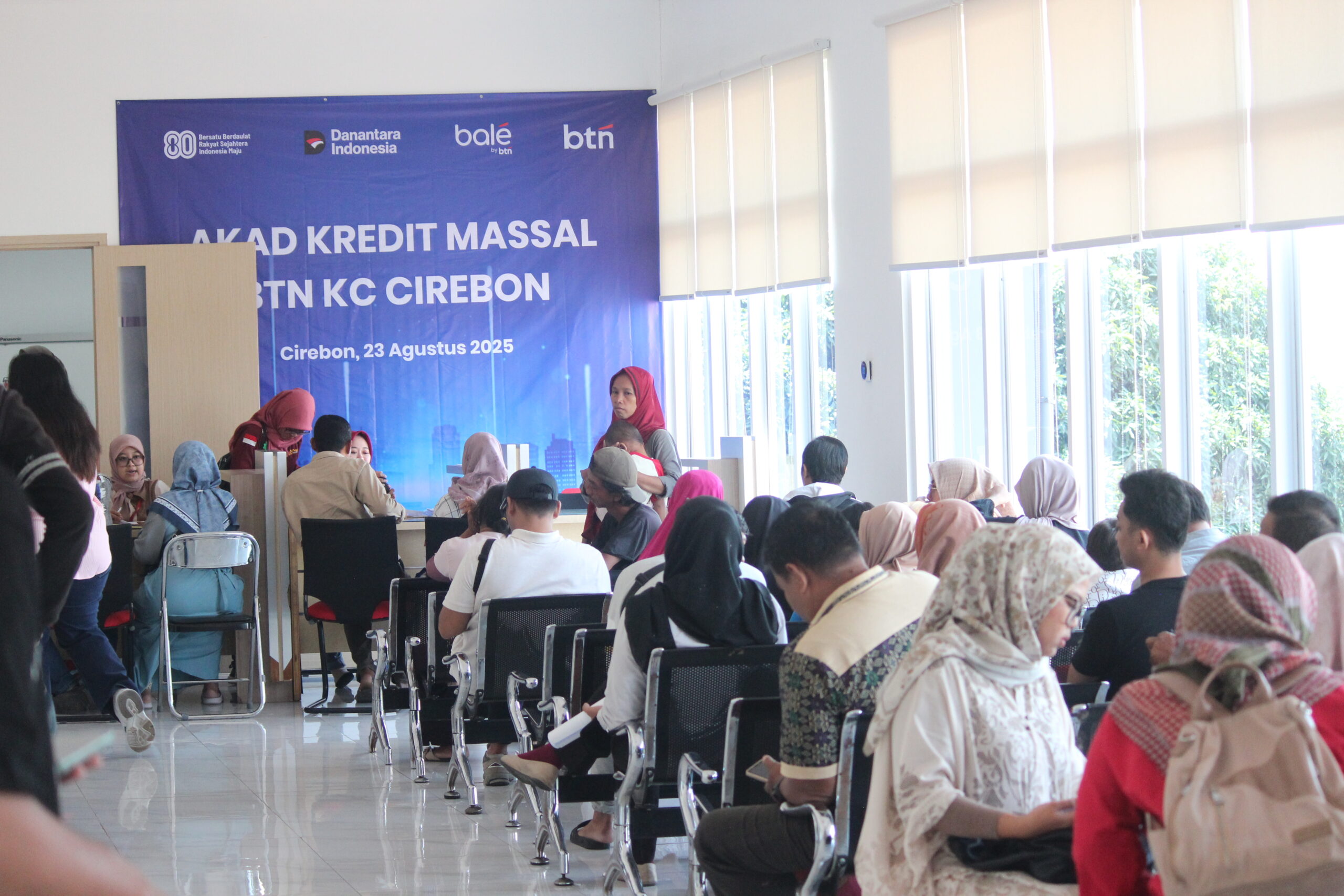 CIREBON, (SW)- Bank BTN Cabang Cirebon kembali menggelar akad kredit massal yang dihadiri para calon debitur dan pengembang rumah subsidi dari wilayah Ciayumajakuning pada Sabtu, 23 Agustus 2025.