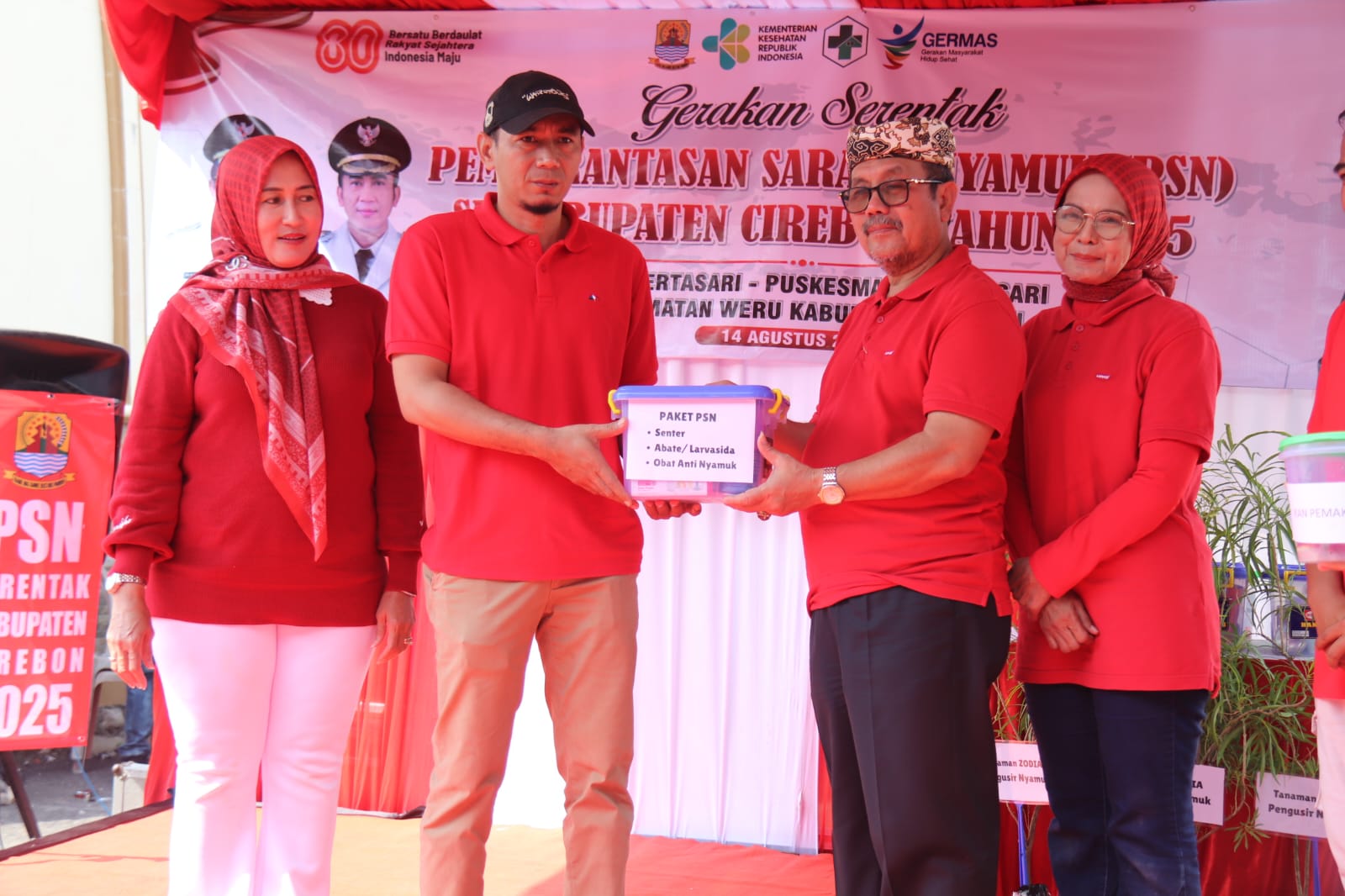 CIREBON, (SW)- Pemerintah Kabupaten Cirebon terus menggiatkan langkah-langkah nyata untuk mencegah merebaknya penyakit Demam Berdarah Dengue (DBD). Salah satunya melalui kegiatan Gebyar Serentak Pemberantasan Sarang Nyamuk (PSN) yang dipusatkan di Desa Kertasari, Kecamatan Weru, Kamis (14/8/2025).