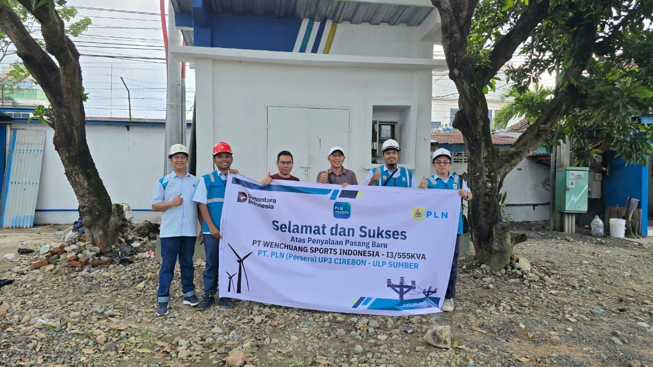 CIREBON, (SW) — Dalam rangka mendukung pertumbuhan ekonomi dan iklim investasi di wilayah Cirebon, PLN UP3 Cirebon melaksanakan penyalaan pasang baru listrik daya 555 kVA untuk pelanggan industri PT Wenchuang Sport Indonesia yang berlokasi di Raya Arjawinangun No.36, Winong, Kecamatan Gempol, Kabupaten Cirebon.
