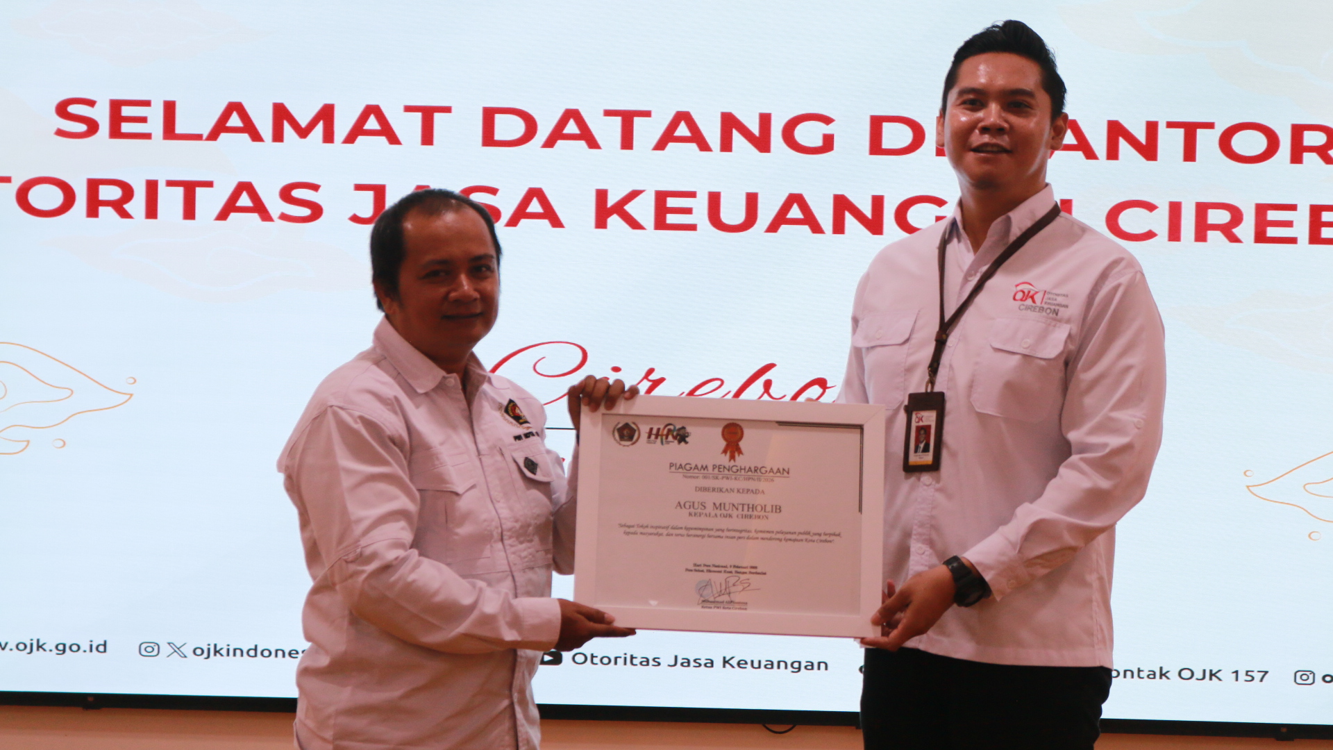 Penghargaan tersebut diberikan sebagai bentuk apresiasi atas peran aktif dan kolaboratif OJK Cirebon sebagai mitra strategis yang dinilai inspiratif dalam mendukung literasi keuangan, pelindungan konsumen, serta pemberdayaan masyarakat, khususnya pelaku usaha dan pedagang pasar.