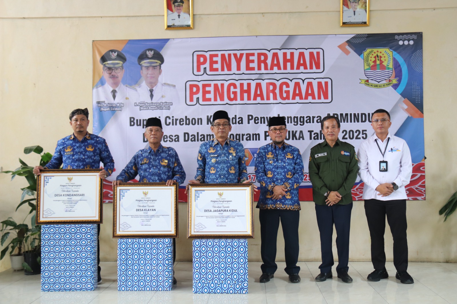 Tiga desa yang menerima penghargaan yakni Desa Kondangsari Kecamatan Beber, Desa Klayan Kecamatan Gunungjati, dan Desa Jagapura Kidul Kecamatan Gegesik. Ketiganya dinilai konsisten dalam melayani kebutuhan administrasi kependudukan warga.