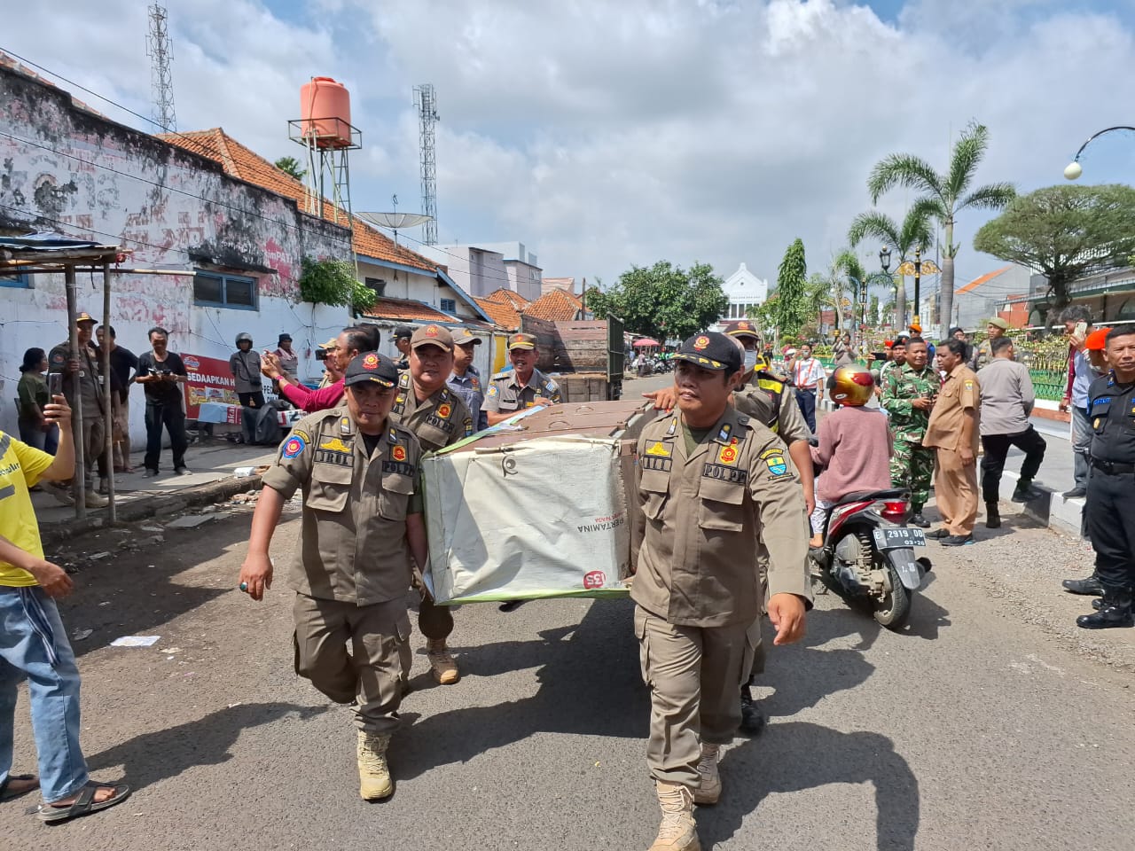Proses penataan diawali dengan penertiban yang dilakukan oleh Satpoll PP Kota Cirebon berkolaborasi dengan Kepolisian dan Polsuska, terhadap siapa saja yang menempati trotoar tidak sesuai dengan peruntukannya pada Senin (10/11).